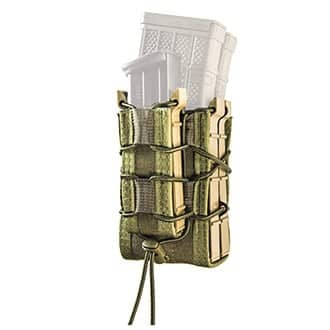 High Speed Gear's Double Decker TACO® magazine carrier combines their modular rifle mag pouch and a modular pistol mag pouch into one secure unit This unique pouch can securely hold a variety of combinations of mags and other accessories The original TACO® forms the base and USGI, HK, PMAG, ARC, FAL, AK 30/ 40, LR and M14 magazines are High Speed Gear's® TACO® line allows users to secure just about any magazine in place, regardless of caliber, without needing to reconfigure or purchase different pouches This allows you to use the same pouch for a number of different calibers and tools Whether you run a belt or MOLLE rig, there's a TACO® for you!The Lightest MultiUse Pouches TenSpeed® was designed to be the pouch you forget is there The military grade elastic pouch was designed to be truly multiuse holding magazines and other critical items and lay flat when not in use If you can fit the item in, it is now that item's pouch and once removed, the pouch lays flat and disappears