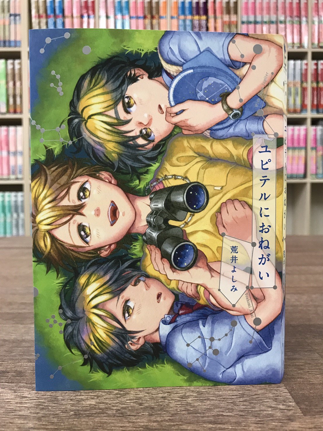白菜 荒井よしみ先生の最新作 ユピテルにおねがいを読みました まず装丁がかわいい っ色鉛筆と絵の具のあたたかい絵に星座が銀の印刷されていて 帯も透け地で細めでコメントもわかりやすくかつ過剰すぎない センスの良さを感じるものでしたって内容に