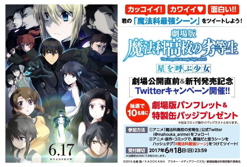Tvアニメ 魔法科高校の劣等生 シリーズ 魔法科 劇場公開直前 文庫 コミック新刊発売記念ツイッターキャンペーン 文庫 コミック アニメで 君が 最強 だと思うシーンをつぶやこう 抽選で10名様に豪華賞品をプレゼント 詳しくは画像を